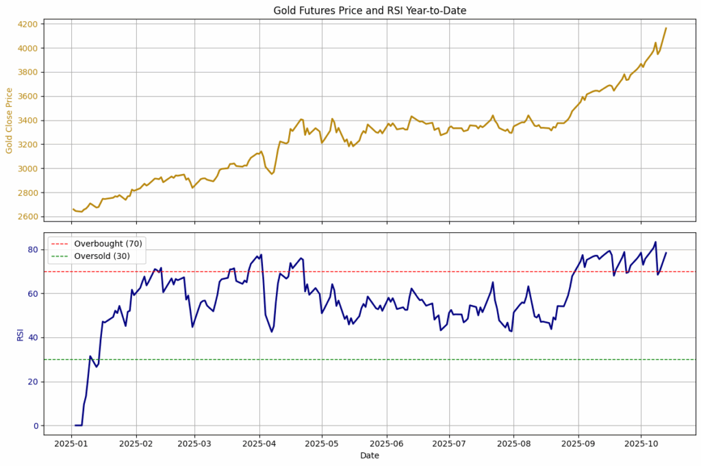 Gold has been on a tear in 2025, recently surging to record levels. In early October, gold prices rocketed past the $4,000 per ounce mark, an astonishing feat for an asset that was around $2,150 just five months ago[1][2]. Year-to-date, gold has gained over 50%, vastly outperforming stocks, bonds, and oil[3]. This rally has captured the attention of retail traders and seasoned investors alike. The big question on everyone’s mind: Is gold’s new all-time high justified by fundamentals, or is it an overbought rally due for a pullback? Let’s break down what’s happening with gold as of October 12, 2025 – and see how our May 2025 analysis held up in hindsight.
