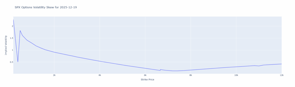 - Directional Sentiment (Skew): The skew tells you which side of the market – downside vs upside – traders are more concerned about. A pronounced negative skew (common in stocks) means downside protection is in high demand – the market’s expectation (or fear) is skewed toward a drop. Traders reading this might deduce bearish or risk-off sentiment: investors are hedging against declines. On the other hand, a positive skew (rare for equities) would indicate more concern about upside moves (perhaps in a commodity facing a potential shortage, where calls get bid up). In summary, skew is often called the “smile of fear” – for equities it usually points downward, encapsulating investors’ crashophobia (crash fear). A sudden change in skew can also be informative: if the skew is becoming more negative over time (puts relatively more expensive), it suggests growing pessimism or demand for hedges.