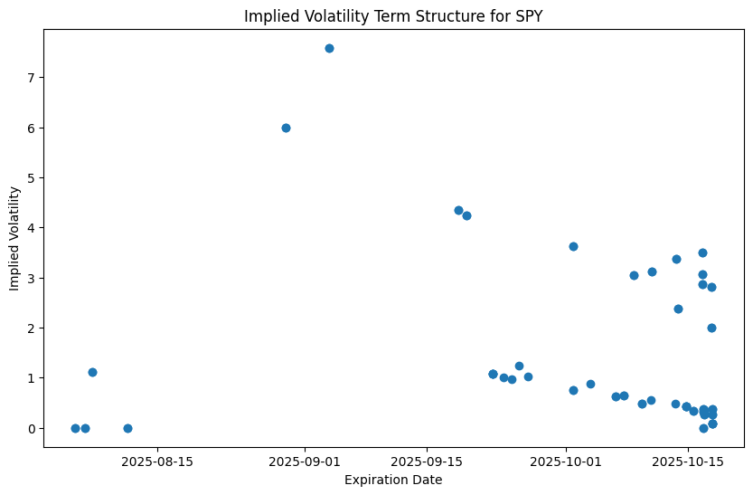 However, the term structure shape can vary. Sometimes it’s downward sloping or inverted – for example, ahead of a scheduled event like an earnings release or a Fed meeting, the very near-term options might have spiked IV (pricing in the event’s volatility) that exceeds longer-term IV. In such cases, the curve might hump or slope down in the short term. A flat term structure would imply the market expects similar volatility across all horizons. Traders pay close attention to these shapes: a near-term IV spike could indicate an imminent volatility event, while a steep long-term climb may indicate uncertainty or risk perceived farther out. Notably, term structure and skew often interact – for instance, short-dated options might exhibit a different skew profile (often more pronounced) than longer-dated options. Near-term skews can be extreme if a binary event is looming (e.g. this week’s options may show a big volatility smile around an earnings date, whereas next month’s are flatter once the event risk is gone). On the other hand, longer-term options, averaging out many potential moves, might show a gentler skew. In any case, combining the strike dimension (smile/skew) with the time dimension (term structure) gives the full implied volatility surface, which advanced traders use to gauge market expectations in 3D.