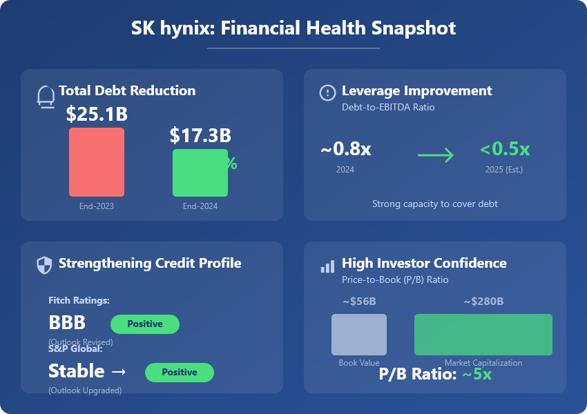 In summary, SK hynix’s financial health in 2024–2025 is very strong, following a brief weak period. Revenues have doubled from the trough and profits are robust, providing ample cash flow.